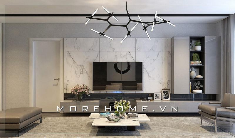 Bố trí nội thất phòng khách chung cư phong cách hiện đại, trẻ trung nhưng không kém phần cá tính và sang trọng