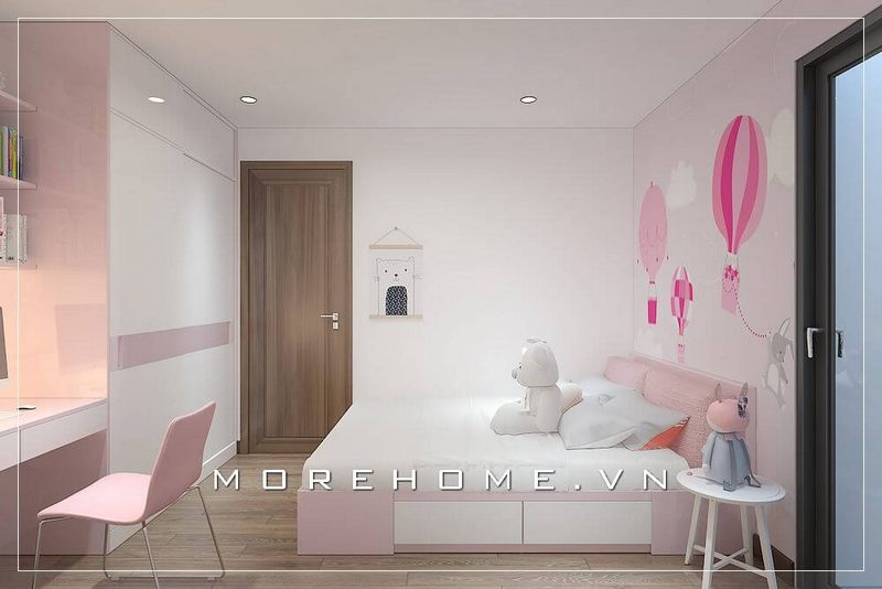 Giường ngủ bé gái gỗ công nghiệp với sự kết hợp hài hòa giữa 2 gam màu trắng - hồng tạo nên một không gian phòng ngủ dễ thương, ấn tượng