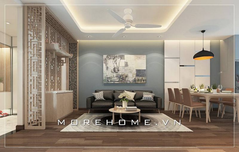 Mẫu thiết kế bàn thờ chung cư đẹp kết hợp vách cnc gỗ màu tự nhiên tạo giúp tách biệt không gian,tạo vẻ đẹp sang trọng