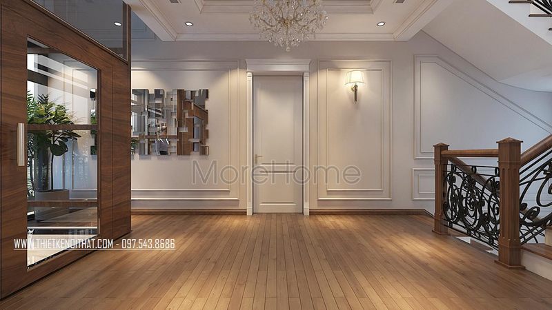 Cầu thang gỗ sắt tân cổ điển là một công trình cao cấp, nó tô điểm giá trị thẩm mỹ và sử dụng rất tốt.