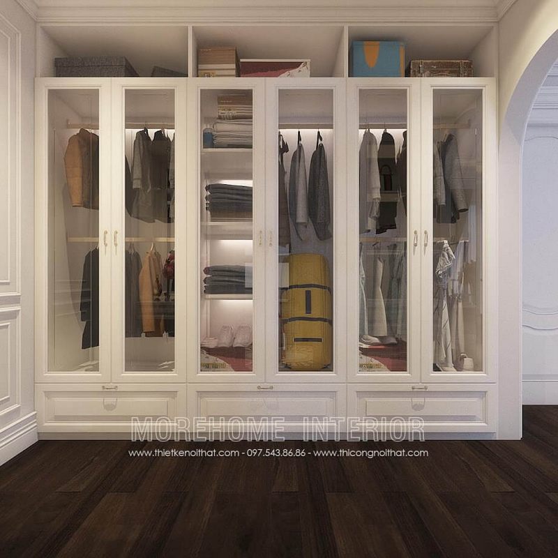 Tủ áo cánh được trang bị đèn Led để tạo nên một không gian thẩm mỹ đặc biệt.