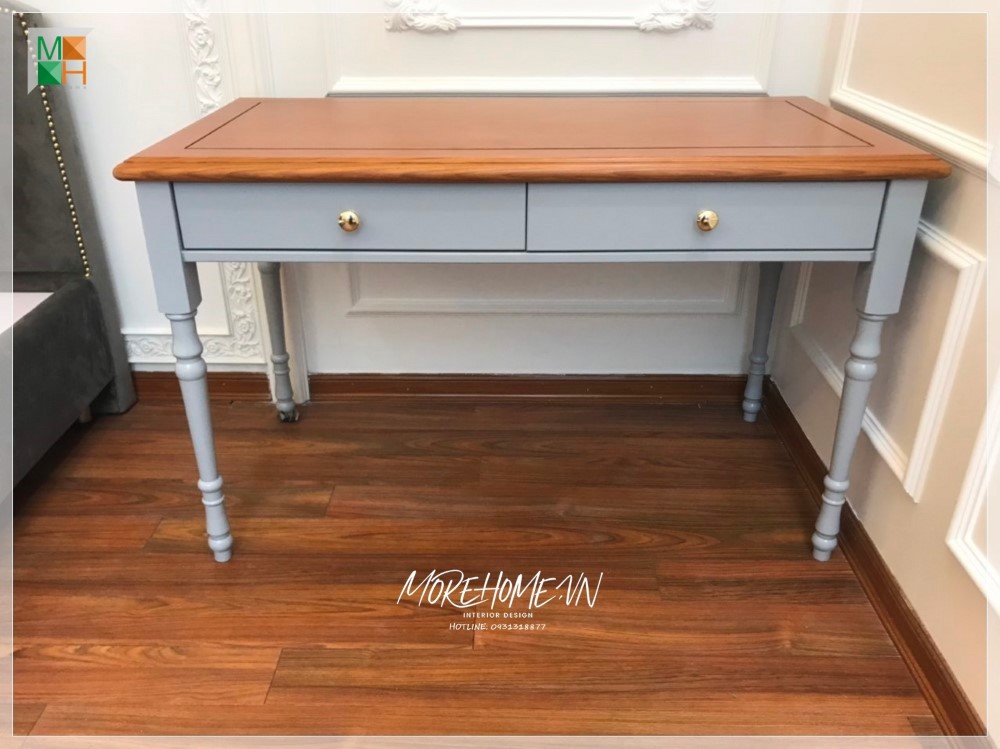 Mẫu bàn làm việc kèm kệ sách gỗ tự nhiên sơn trắng, cùng với thiết kế hình ngôi nhà độc đáo sẽ tạo nên một góc làm việc sinh động hơn.